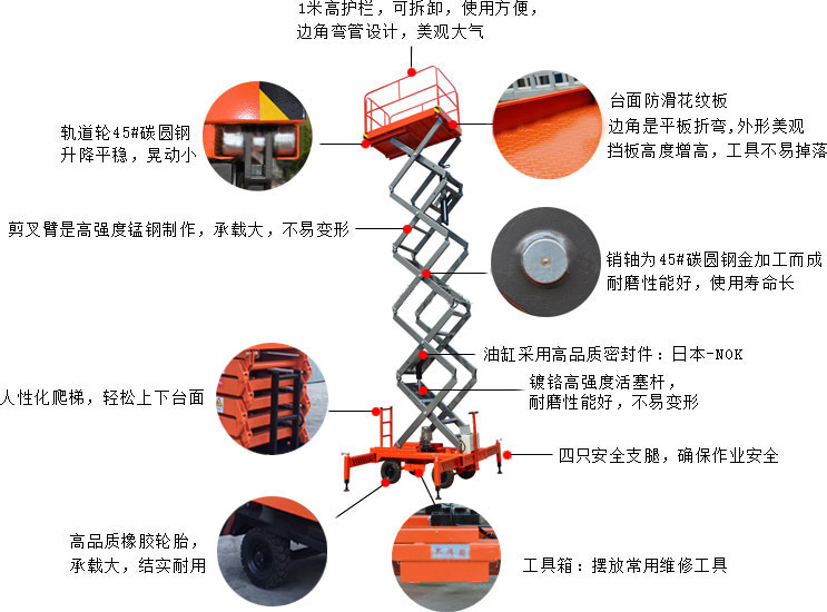 產(chǎn)品描述: 適用于廠房、工地、賓館、倉(cāng)庫(kù)、機(jī)場(chǎng)、車站、碼頭、體育場(chǎng)等高大建筑之高空設(shè)備安裝、檢修和清潔衛(wèi)生,野外電力設(shè)施、高架管道、起吊機(jī)械維護(hù)保養(yǎng)等高空作業(yè)。